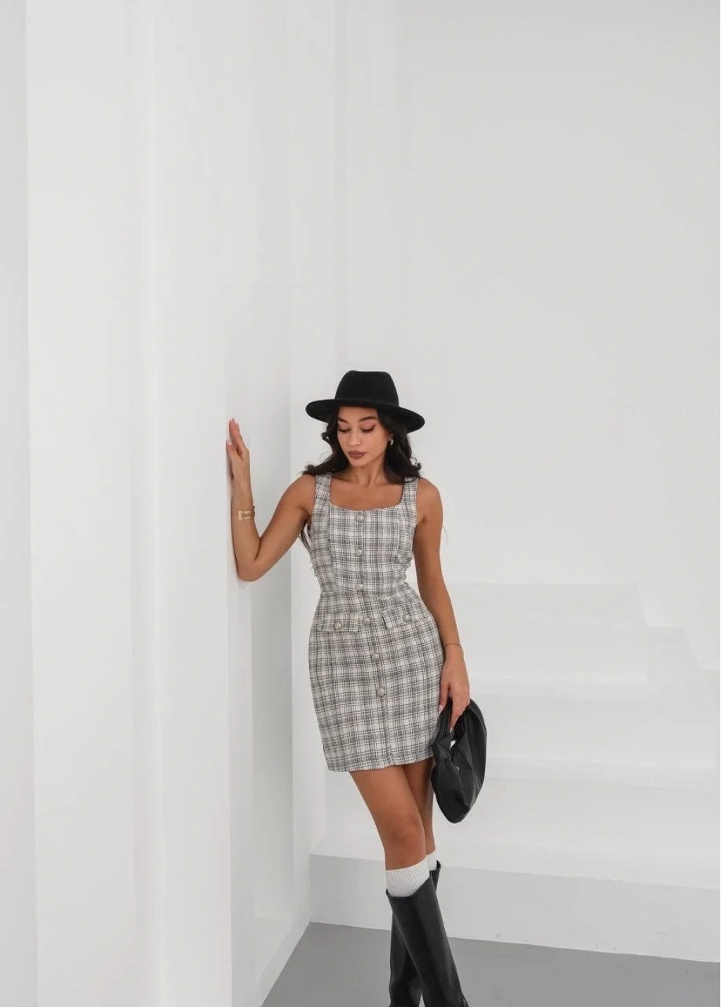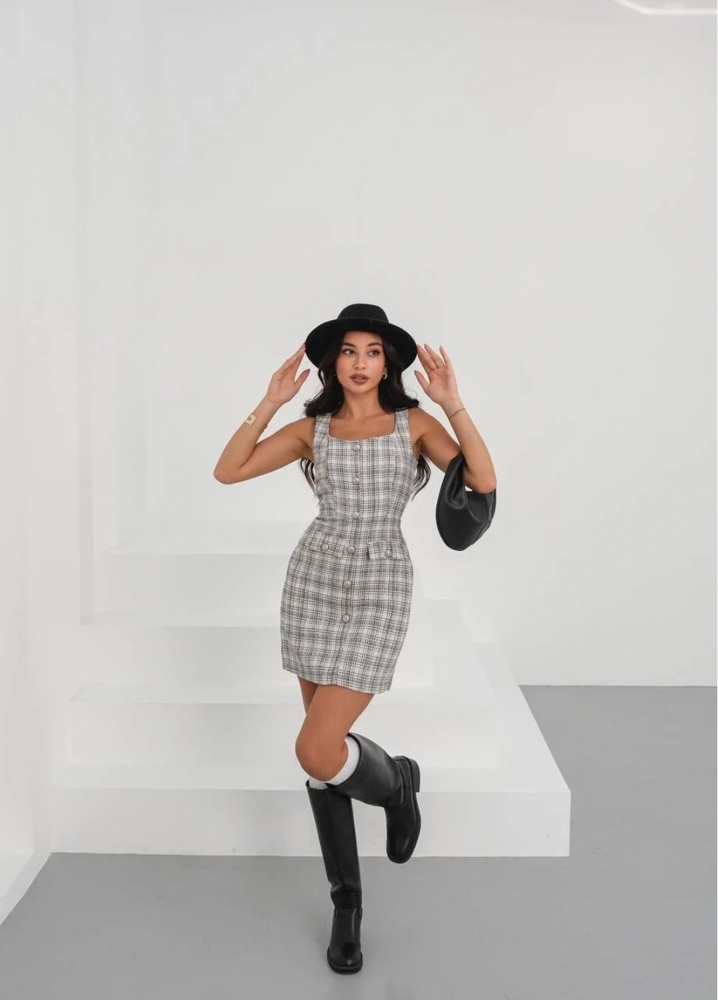 Askılı Ch Kumaş Düğmeli Elbise Gribeyaz H265007