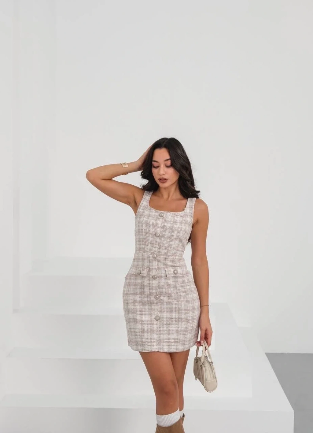 Şıklık ve zarafetin buluştuğu Askılı Ch Kumaş Düğmeli Elbise Pudra Beyaz H265007, gardırobunuzun vazgeçilmezi olmaya aday! İster özel davetlerde, ister günlük şıklıkta rahatlıkla tercih edebileceğiniz bu elbise, feminen detaylarıyla dikkat çekiyor.