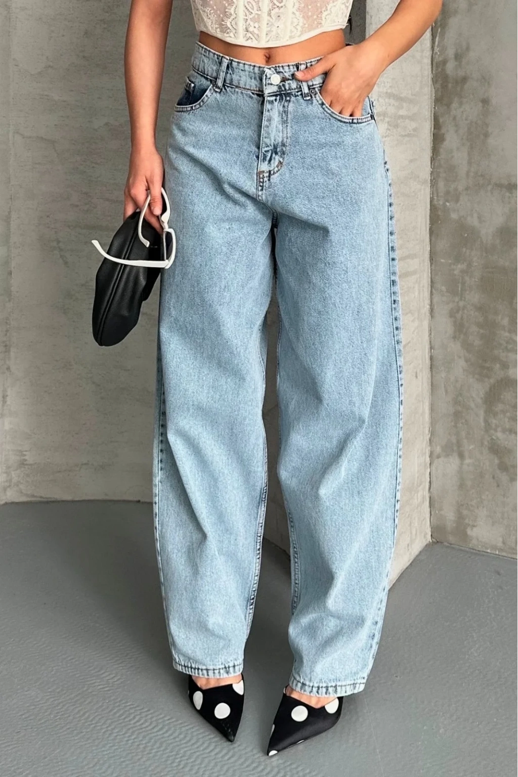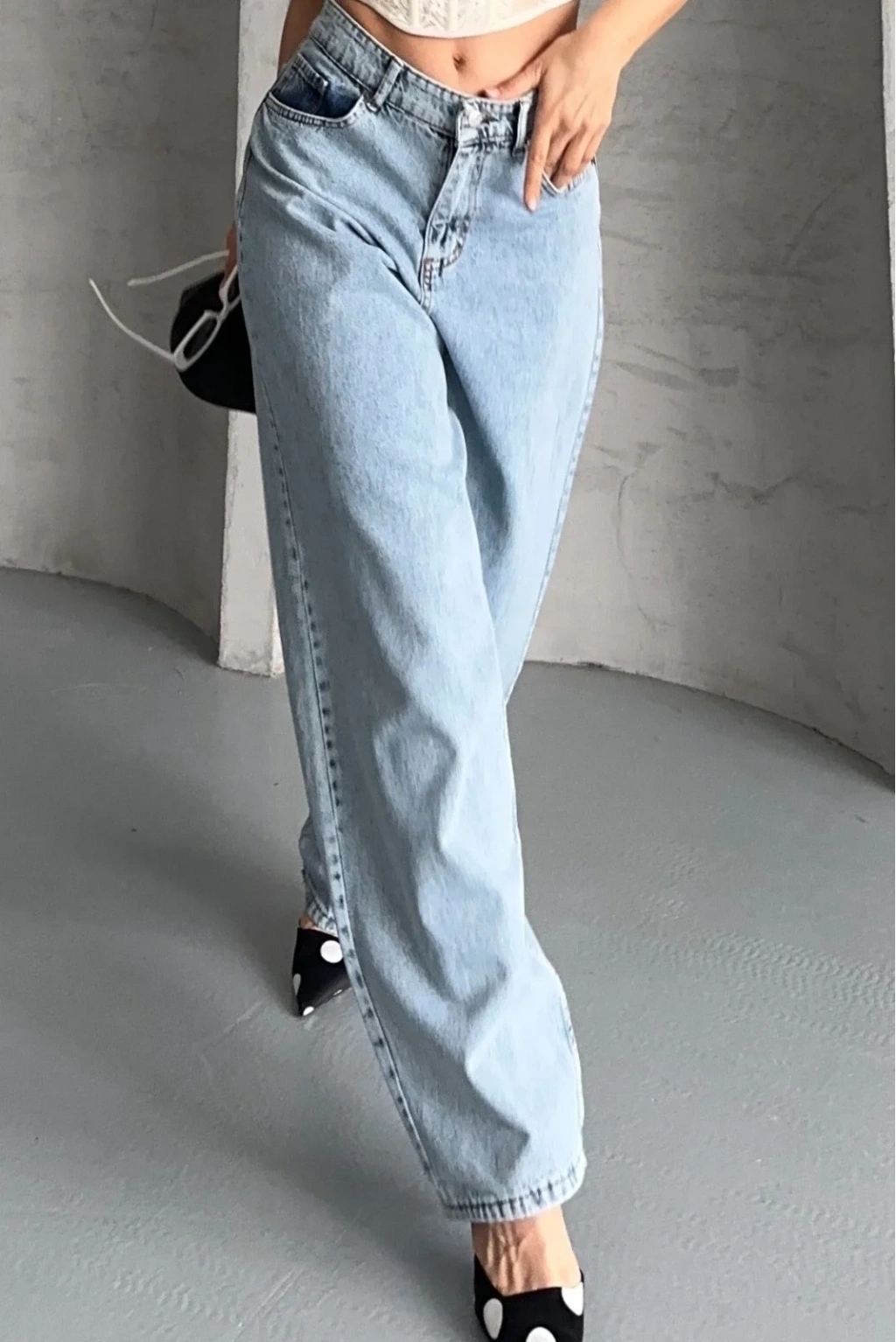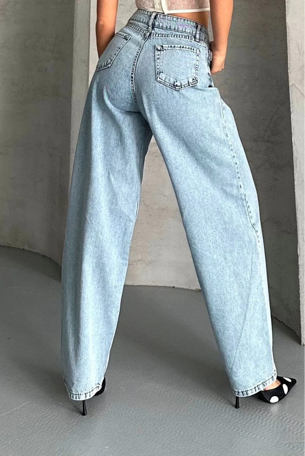 Baggy kar yıkama buz mavi jeans pantolon d2007, her kadının gardırobunda olması gereken şık ve rahat bir seçenektir.