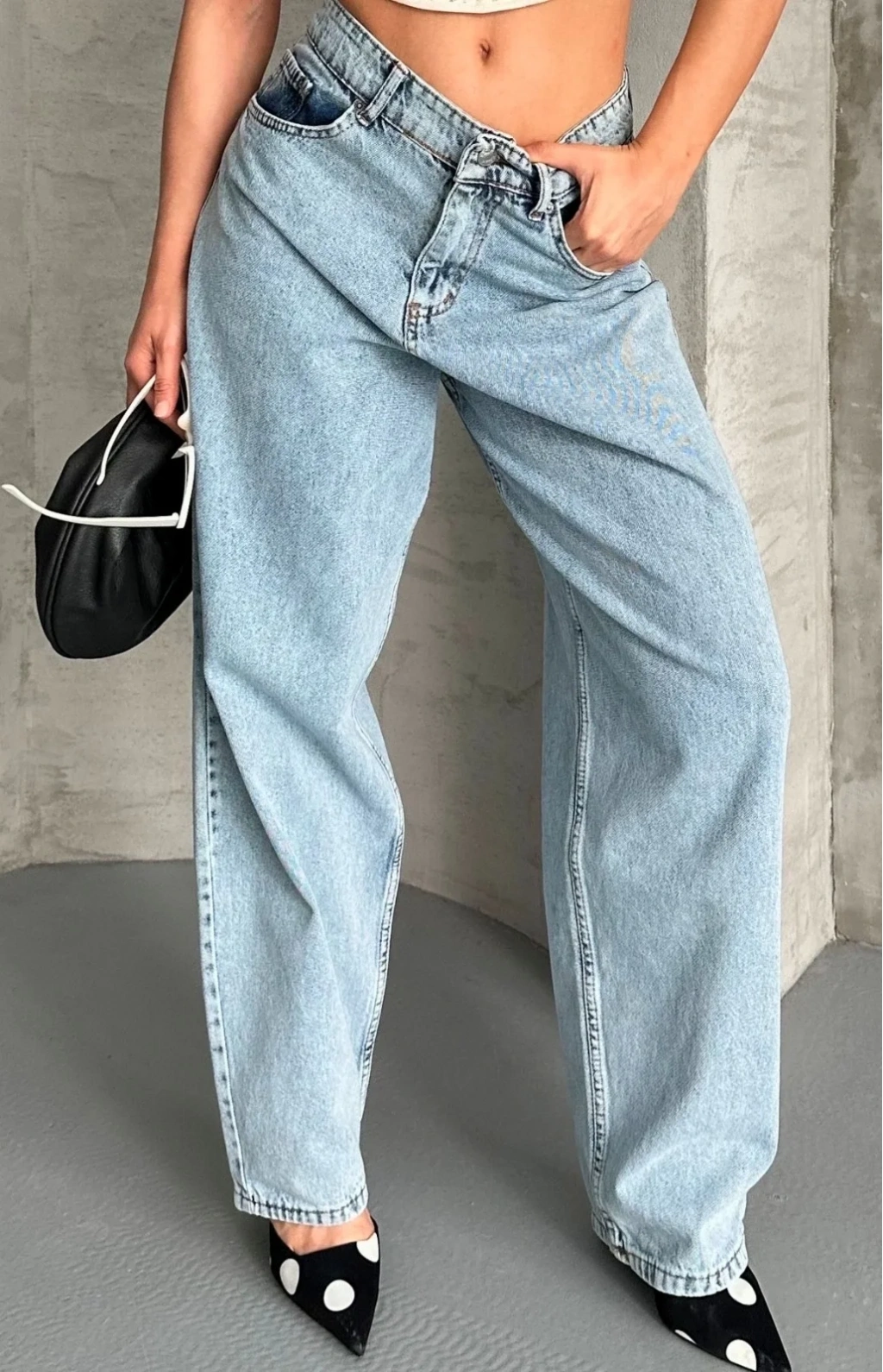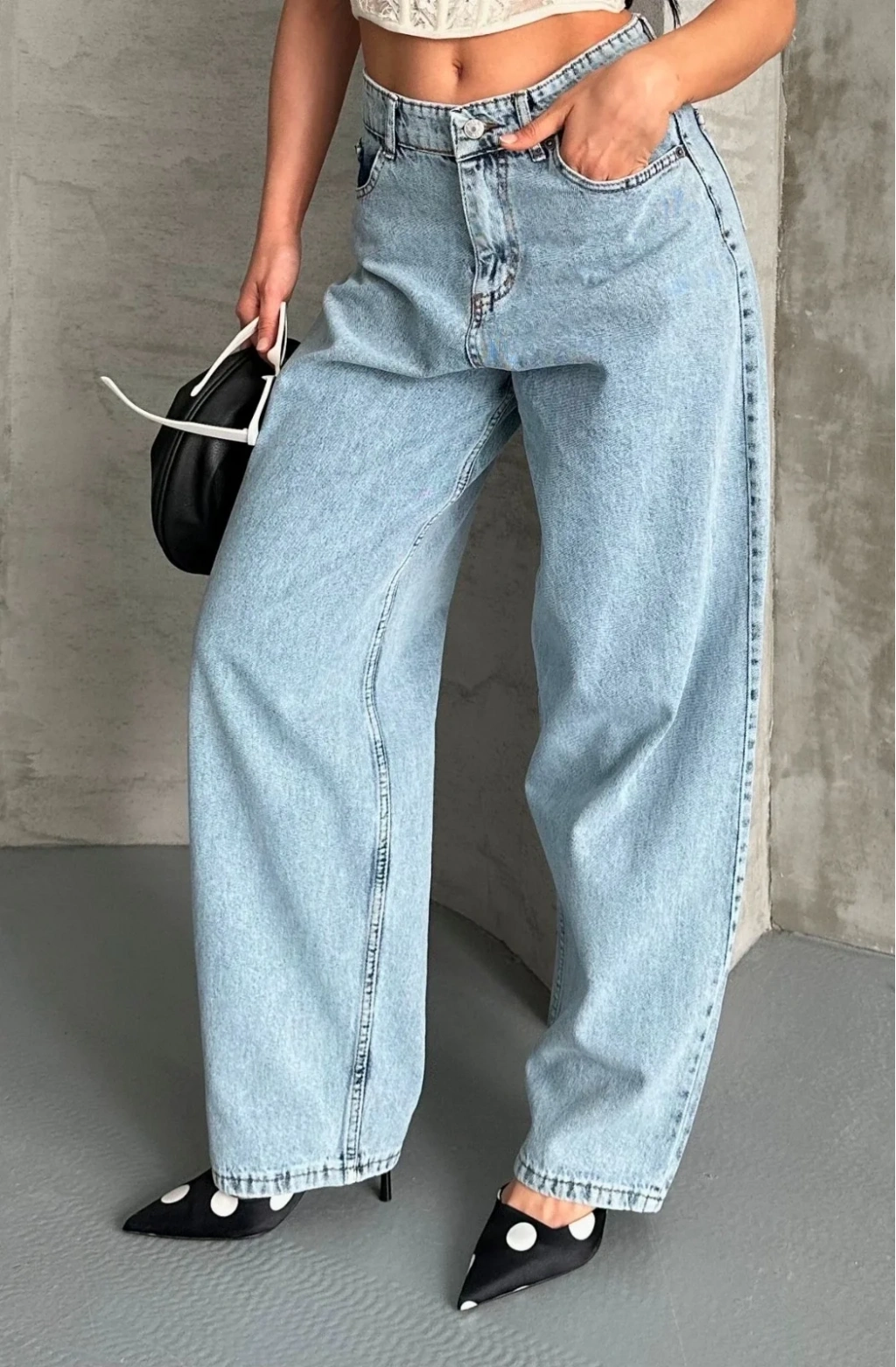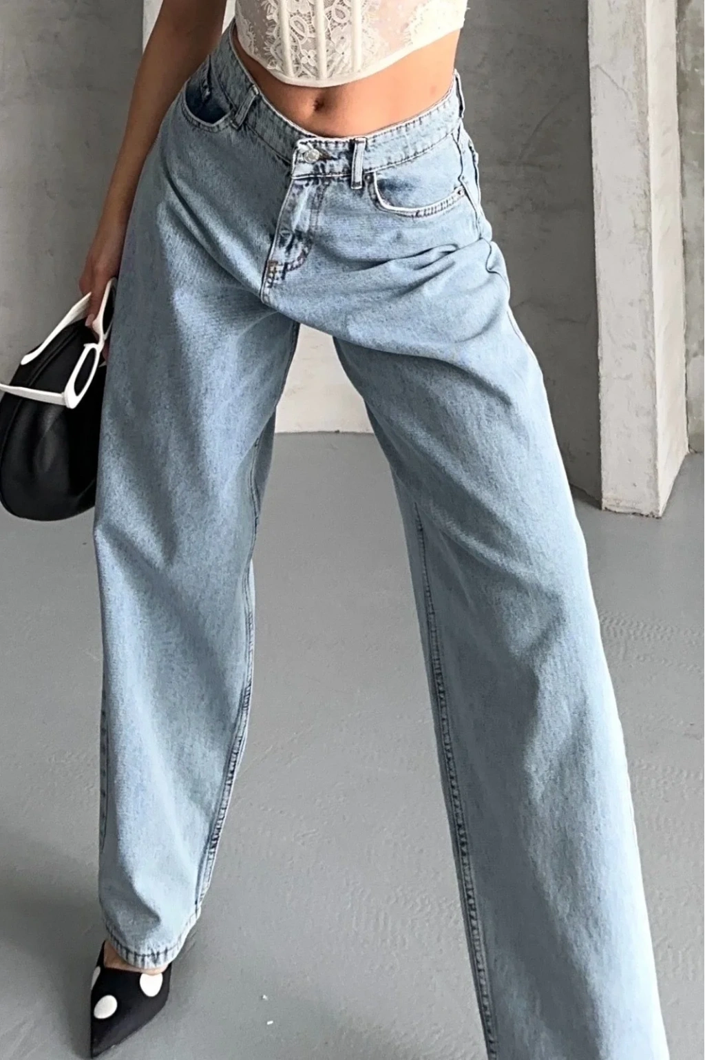 Baggy kar yıkama buz mavi jeans pantolon d2007, her kadının gardırobunda olması gereken şık ve rahat bir seçenektir.