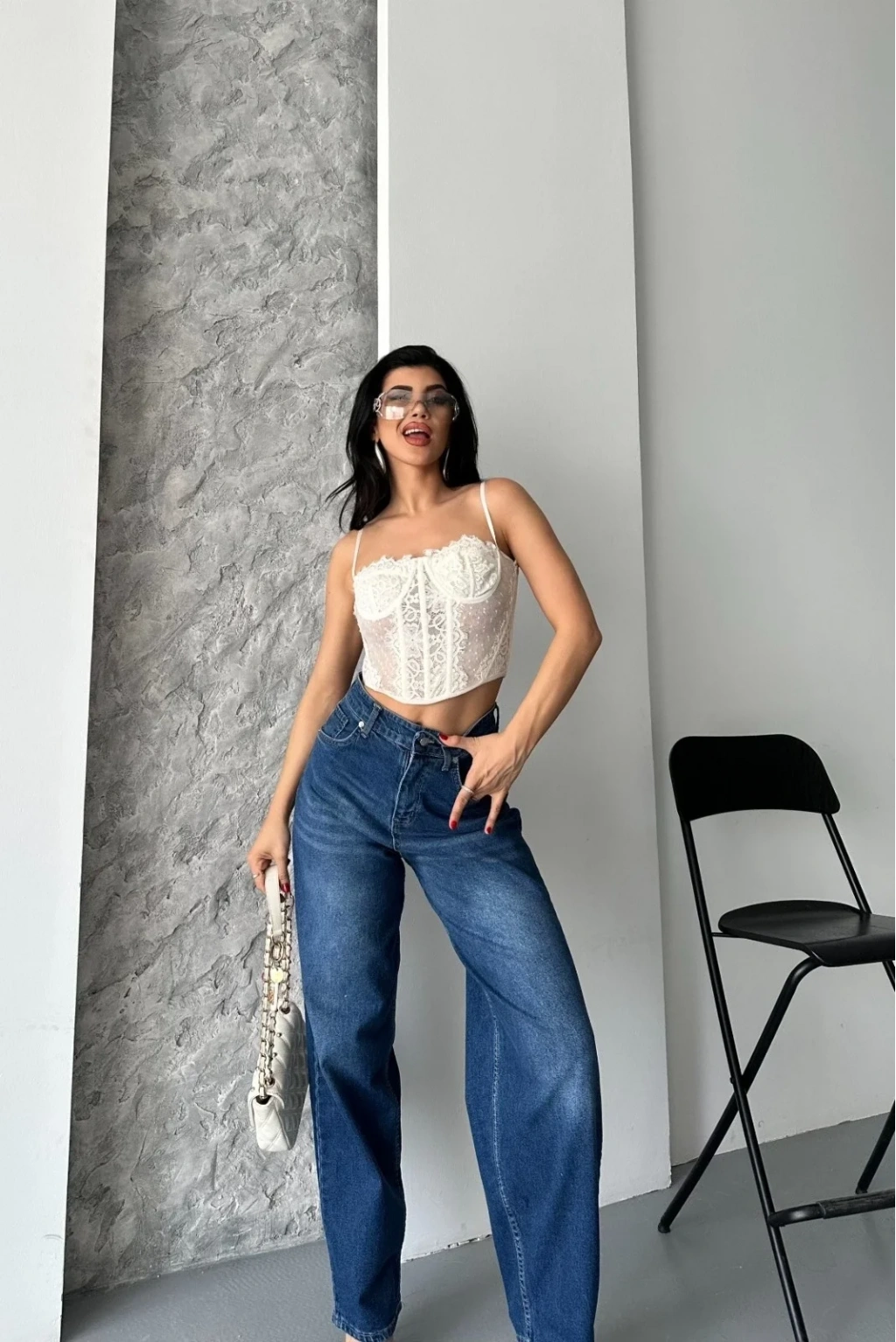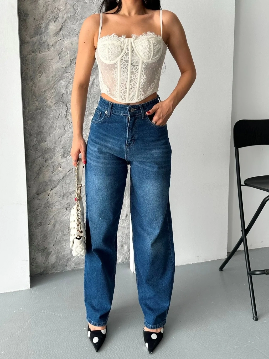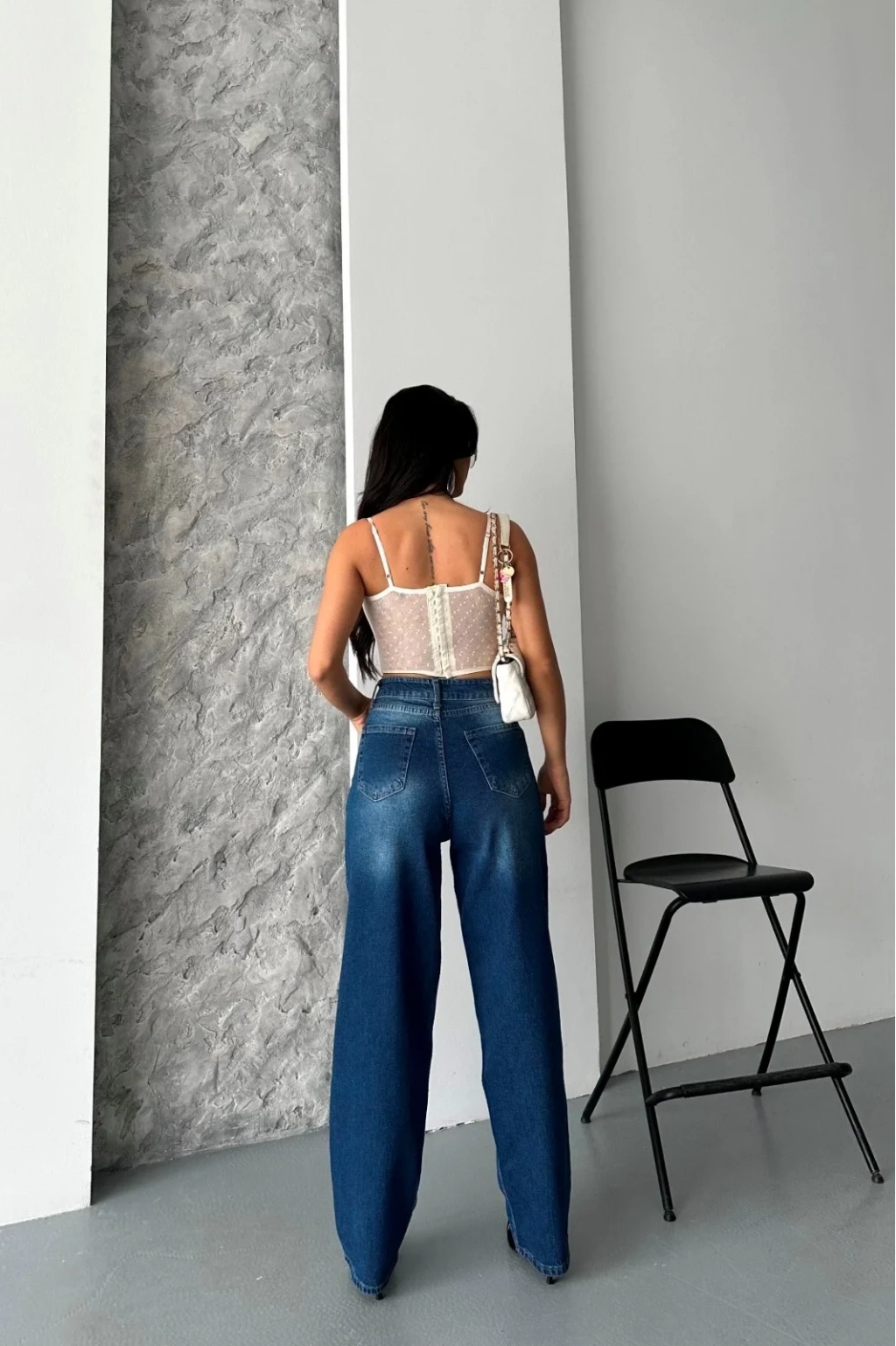 Baggy süper taş bıyık yıkama koyu mavi jeans pantolon d2007, şıklığı ve rahatlığı bir arada sunar.