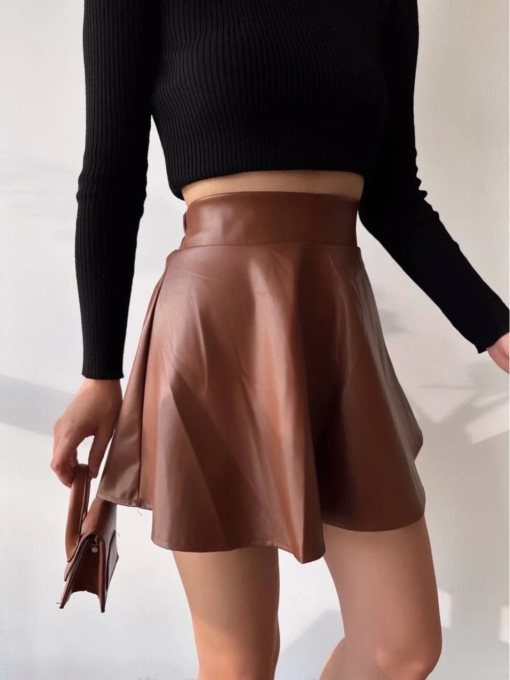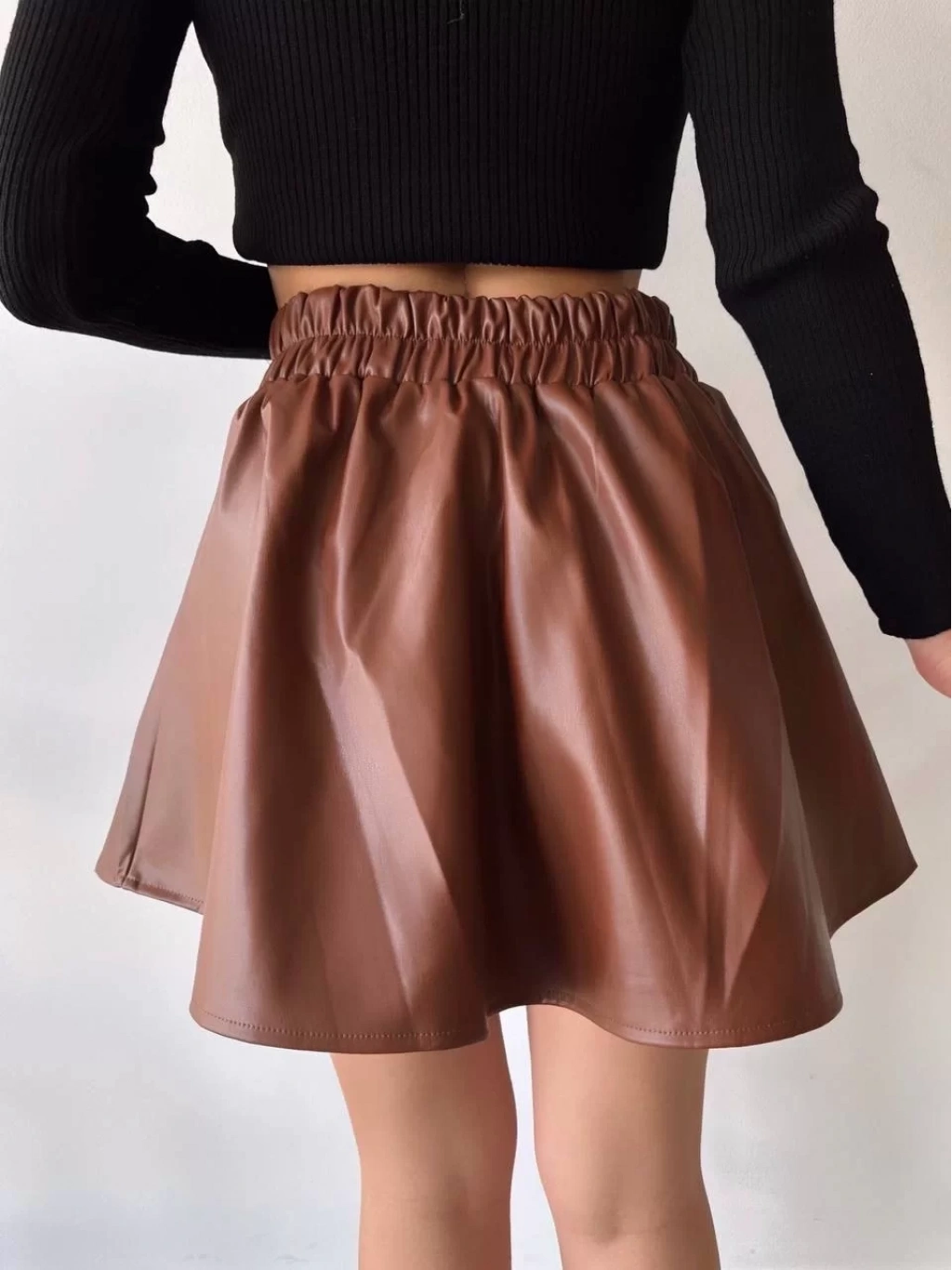 Şıklık ve konforu bir arada sunan S24599 Beli Lastikli Deri Etek, gardırobunuzun vazgeçilmezi olmaya aday!