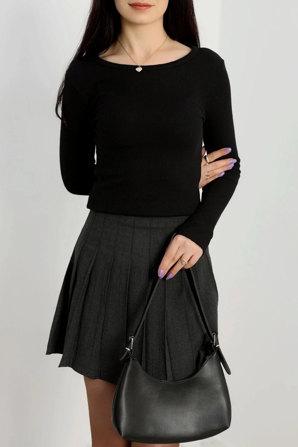 Bisiklet Yaka Parmak Geçmeli Kaşkorse bluz siyah a3829, kadın giyim kategorisinde şıklık ve rahatlığı bir arada sunan bir üründür.