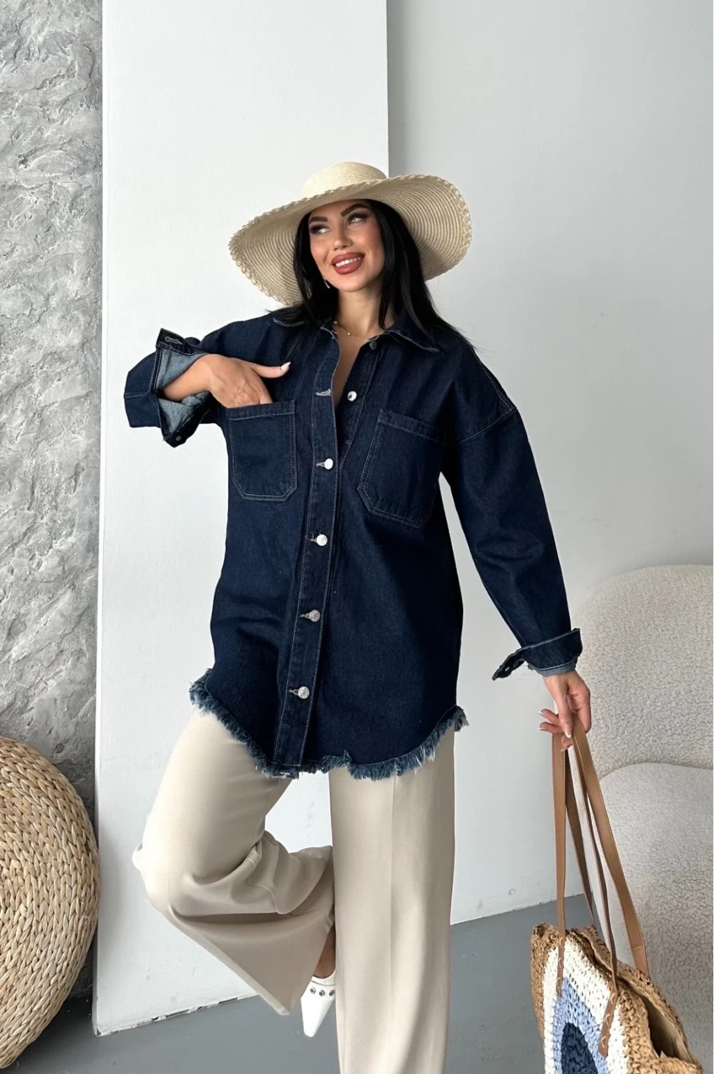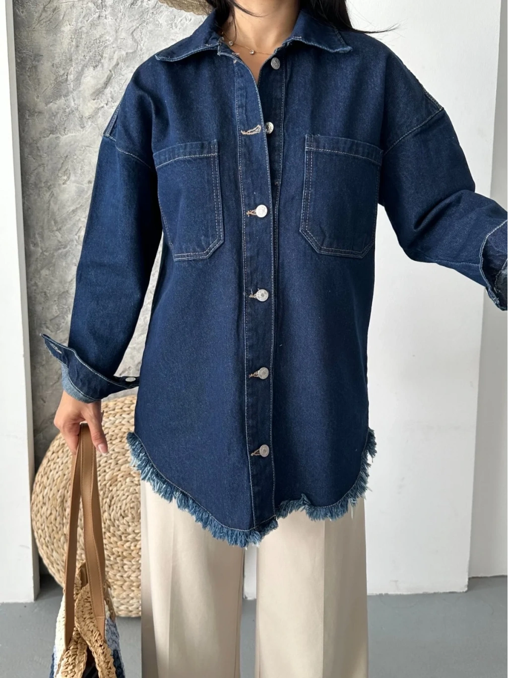Bu şık ceketi günlük giyimde jean pantolonlarınızla, eteklerinizle veya elbiselerinizle kombinleyerek farklı tarzlar yaratabilirsiniz. Farklı beden seçenekleri ile sunulan cepli püsküllü kar yıkama kot ceket koyu mavi D2515, tarzınızı tamamlamanızı sağlayacak!