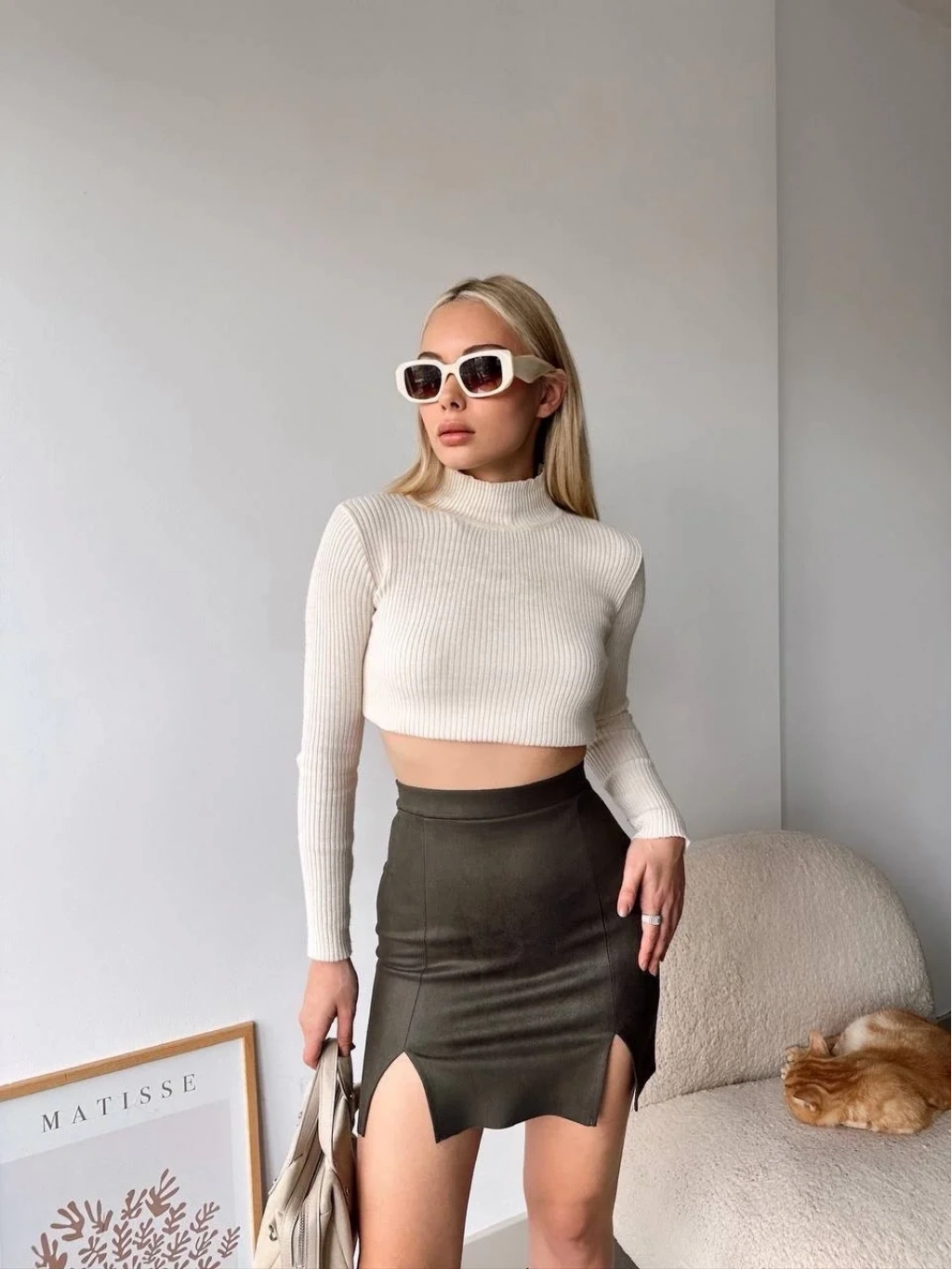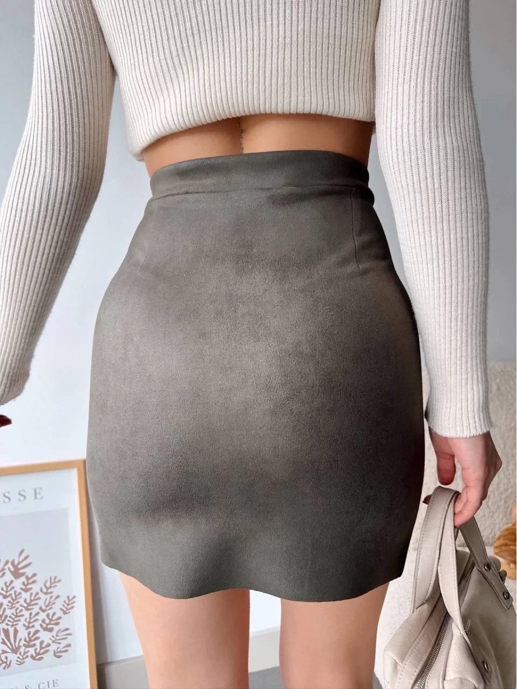 Şık ve tarz bir görünüm elde etmenin olmazsa olmazı çift yurtmaçlı süet etek haki S241002, gardırobunuzun vazgeçilmezi olmaya aday!