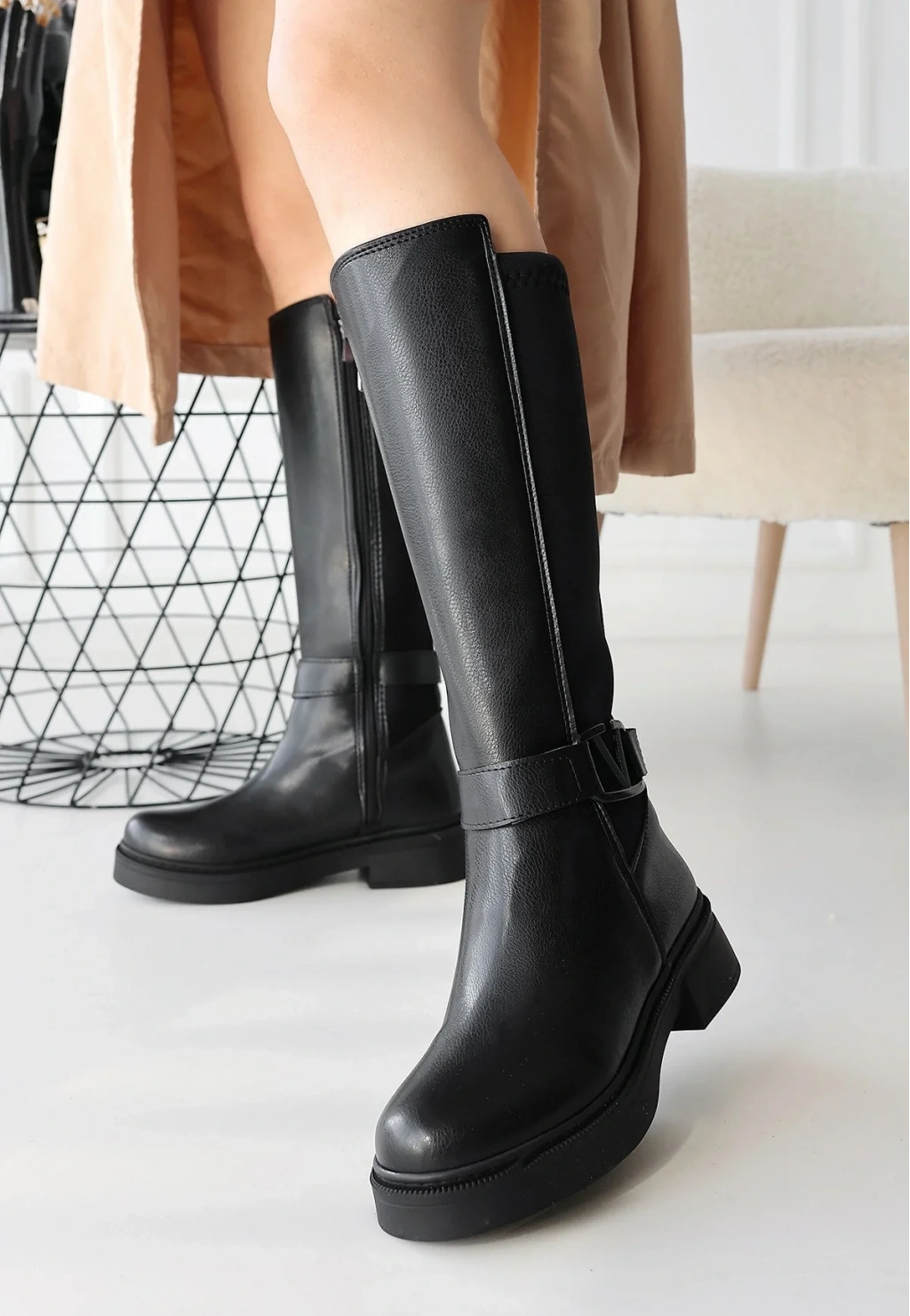 Detay: Topuklu Yandan Fermuarlı Diz Altı Çizme