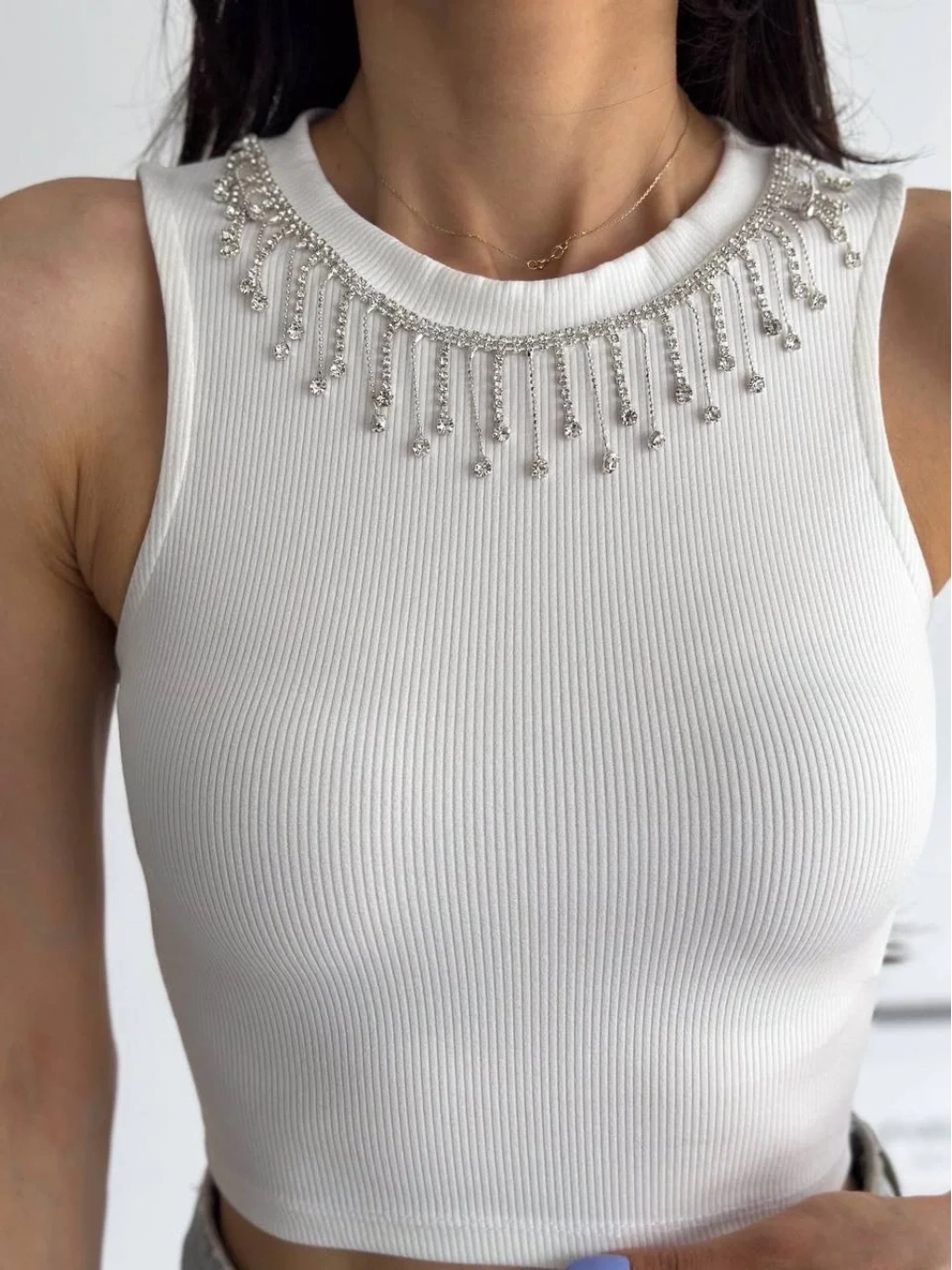 Fitilli kaşkorse detayıyla şıklığına şıklık katan beyaz atlet. İnce zincir detayıyla tarzınızı tamamlayın.--Fitilli kaşkorse detayıyla tasarlanmış şık bir atlet arayan kadınlar için ideal bir seçim olan Fitilli Kaşkorse Yakası Zincirli Atlet, tarzınızı ve şıklığınızı ön plana çıkaracak. Ürün Özellikleri: Kaşkorse detayıyla feminen bir görünüm sunar. Zincir detayıyla modern ve şık bir hava katar. Yüksek kaliteli ve dayanıklı fitilli kumaşı sayesinde uzun süre kullanım sağlar. Vücudu saran kesimiyle bedeni güzel bir şekilde kusursuzca sarar. Günlük kullanıma uygun, rahat ve şık bir tasarıma sahiptir.