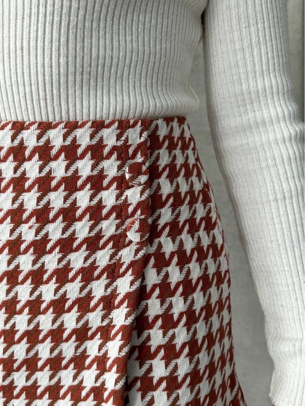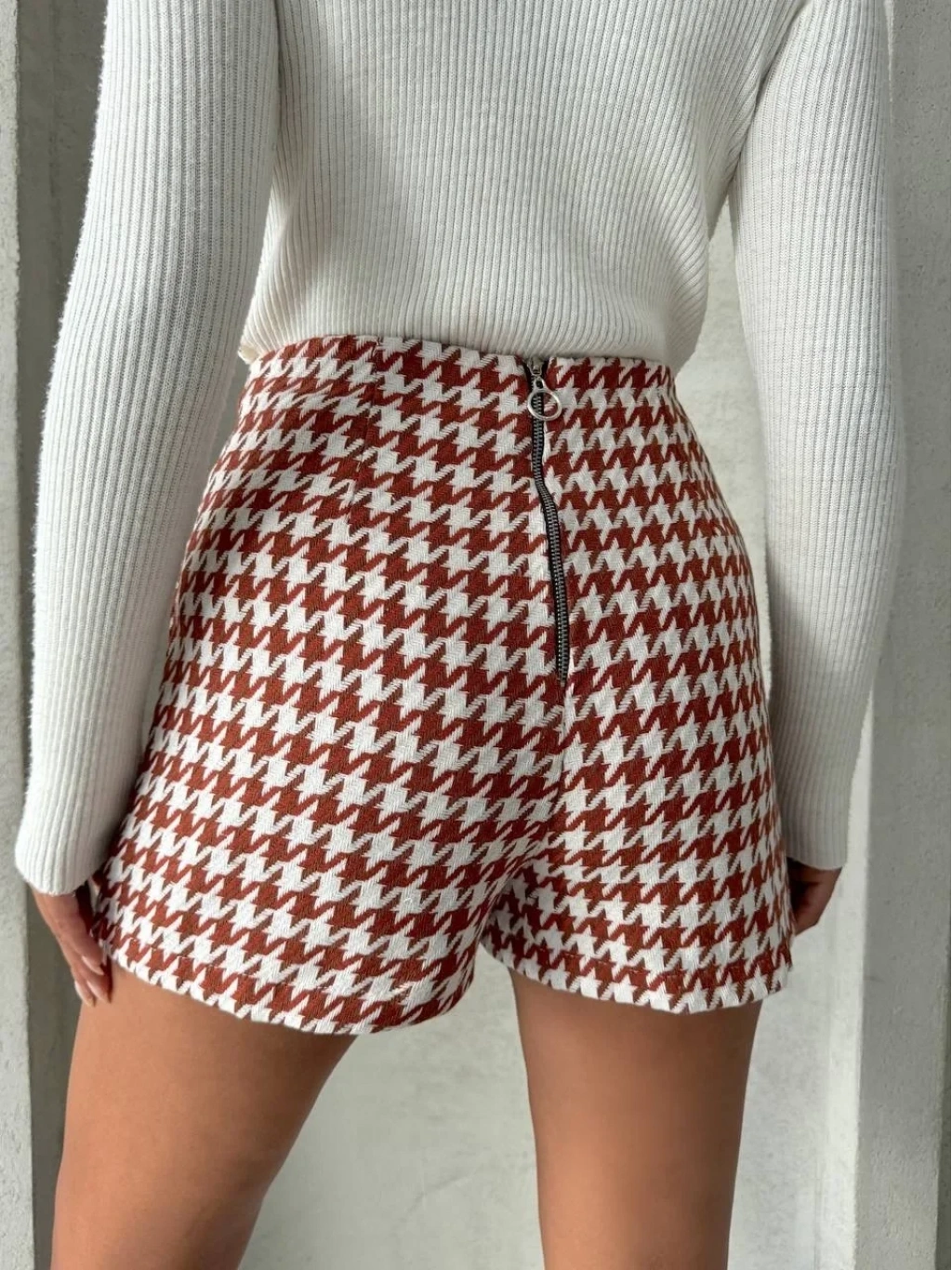 CH markasının iki düğmeli kaz ayağı desenli şort eteği, şıklık ve rahatlığı bir arada sunuyor. İnce kumaşı ile yaz aylarında serin kalmanızı sağlarken, bordo ve beyaz rengin harika kombinasyonuyla tarzınızı ön plana çıkarmanıza yardımcı olur.