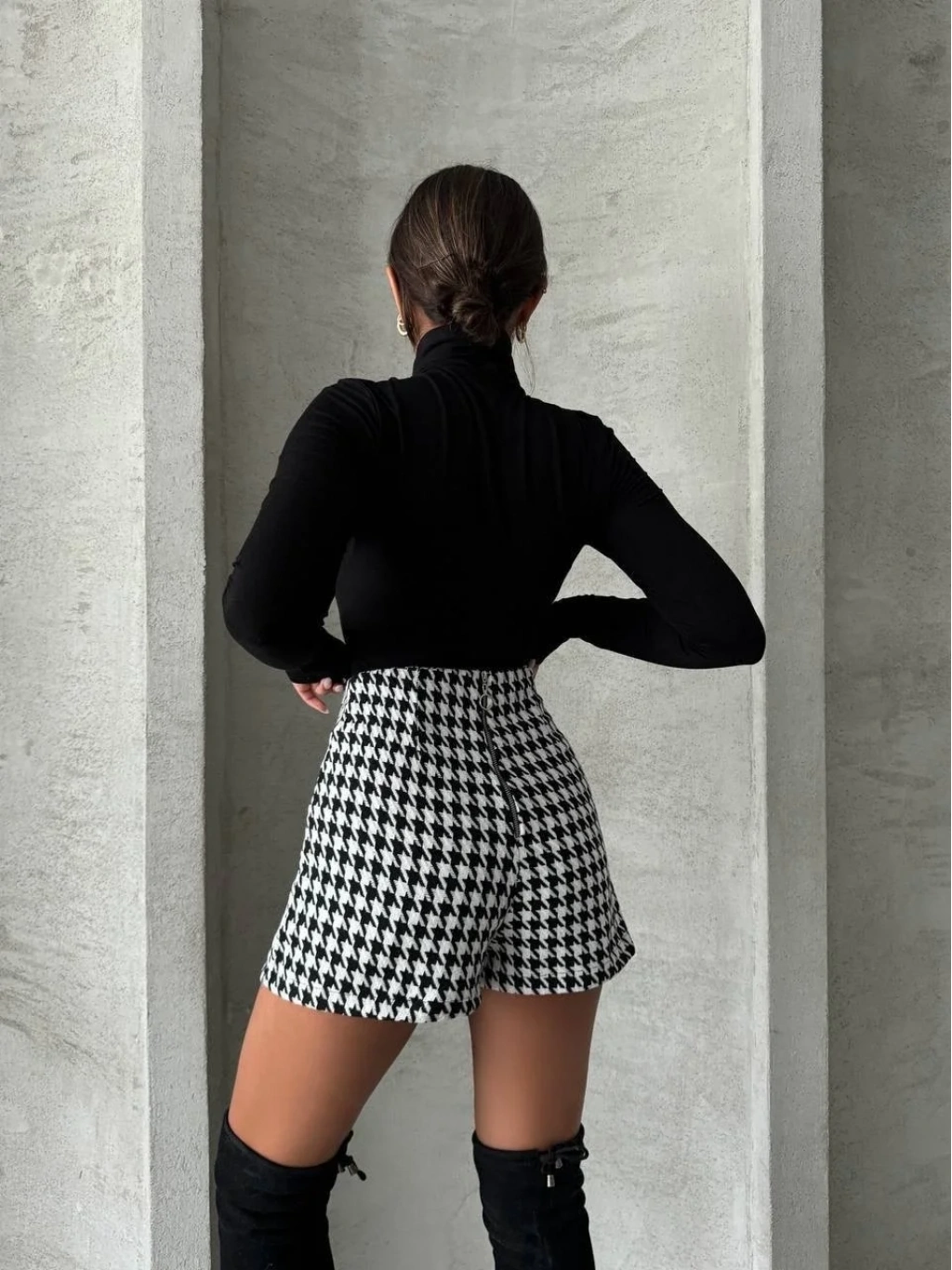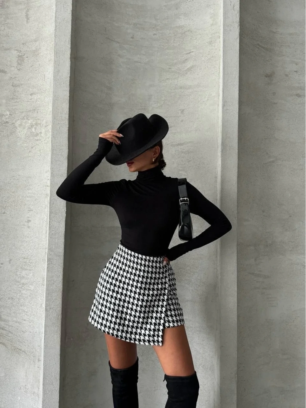 • Kaz ayağı deseniyle trend bir tarz oluşturur.