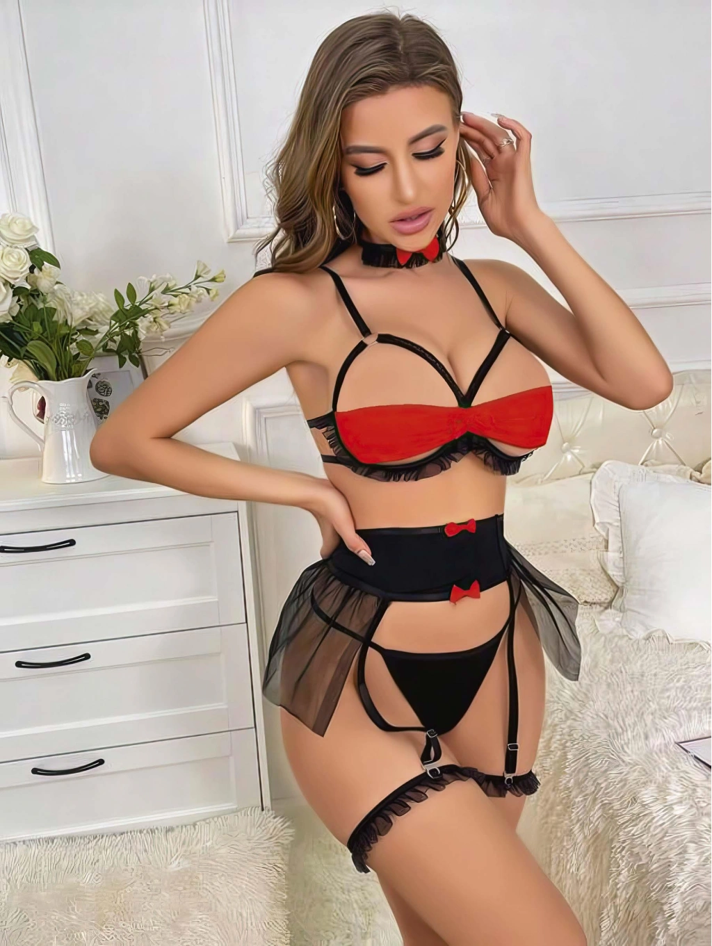 Siyah Dantel ve göğüs band  detaylarıyla dikkat çeken bu fantezi kostüm, enerjik ve farklı bir stil arayanlar için tasarlandı. Yumuşak dokusu ve hafif yapısıyla konforlu kullanım sağlar. Temalı partilerde ve özel davetlerde stilinizi ön plana çıkarır.