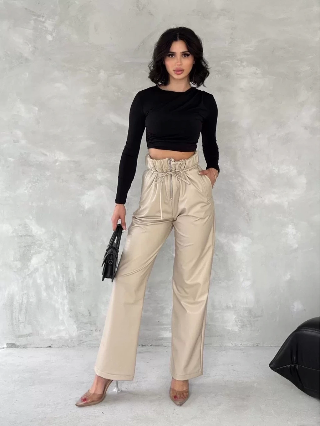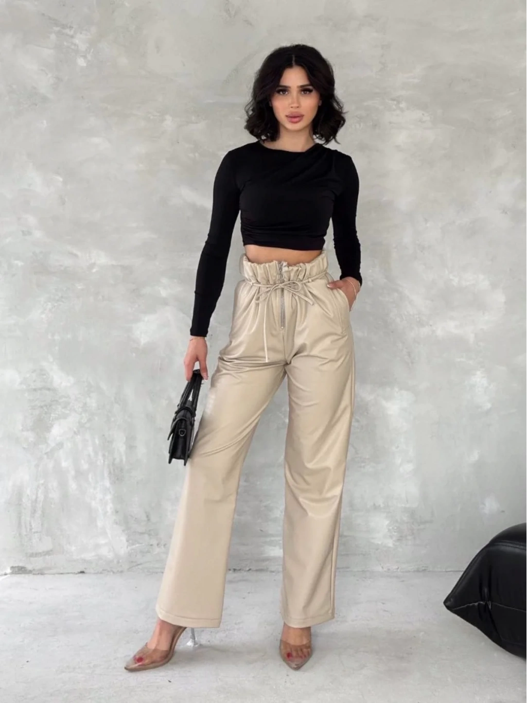 Şıklığı ve rahatlığı bir arada sunan Kendinden İnce Kemerli Deri Pantolon Bej, gardırobunuzun vazgeçilmezi olmaya aday! İşte bu pantolonun özellikleri: