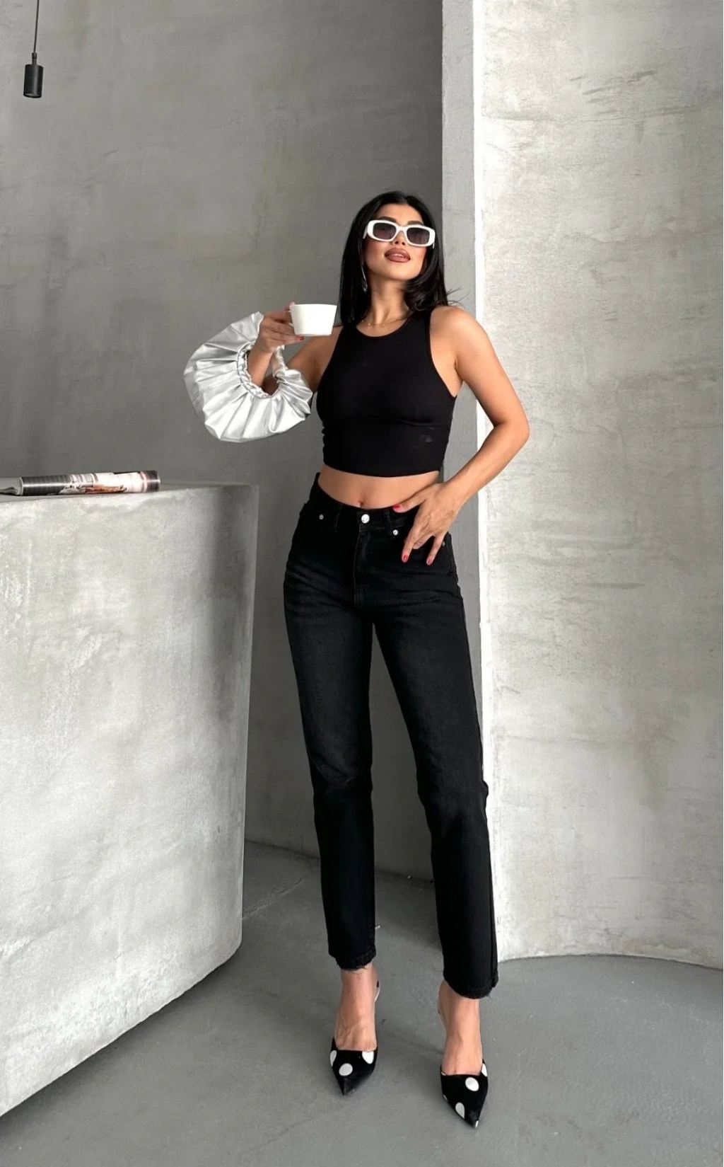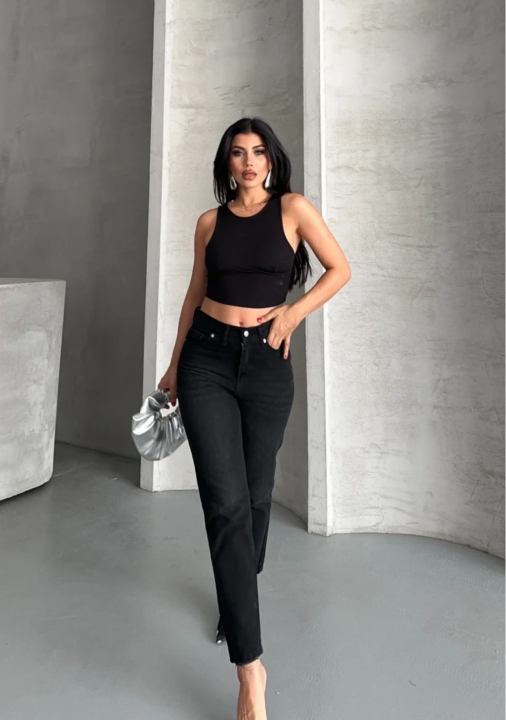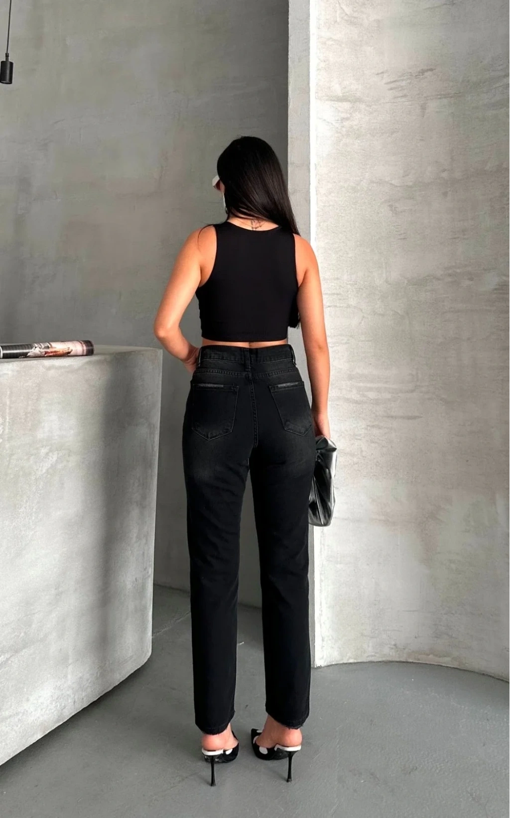 Mom fit enzim bıyıklı taş yıkama siyah jeans pantolon, şıklığı ve rahatlığı bir arada sunar. Hem günlük kullanıma hem de özel anlara uygun olan bu pantolonla tarzınızı konuşturabilirsiniz.