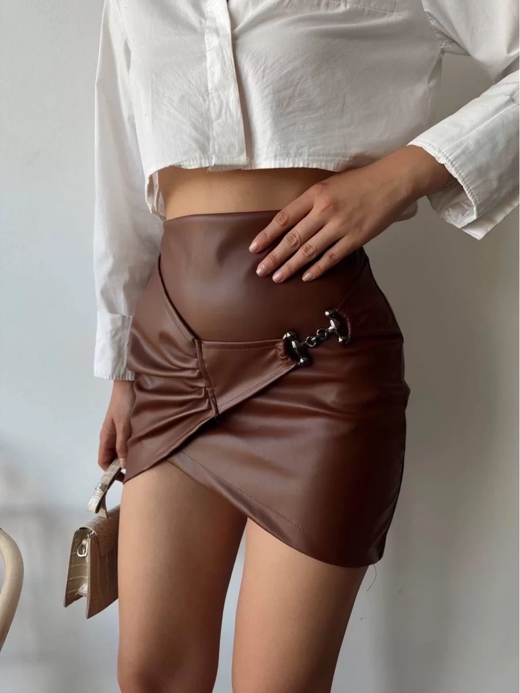 Şıklık ve rahatlık arayan kadınlar için ideal bir seçenek olan Tokalı Deri Etek, gardırobunuzun vazgeçilmez parçalarından biri olmaya aday!