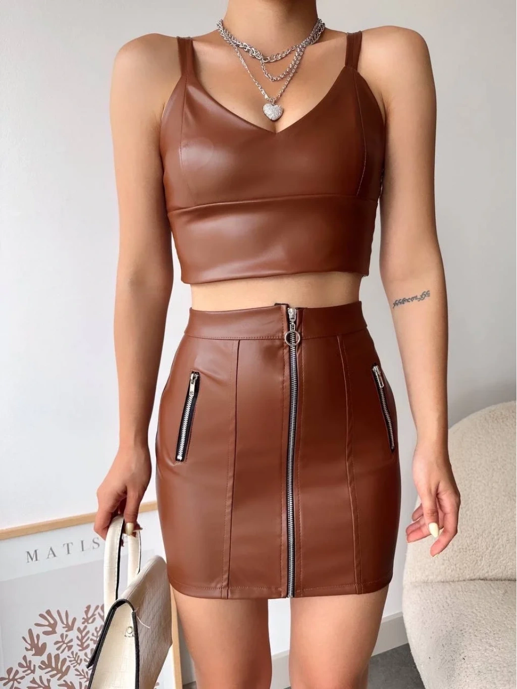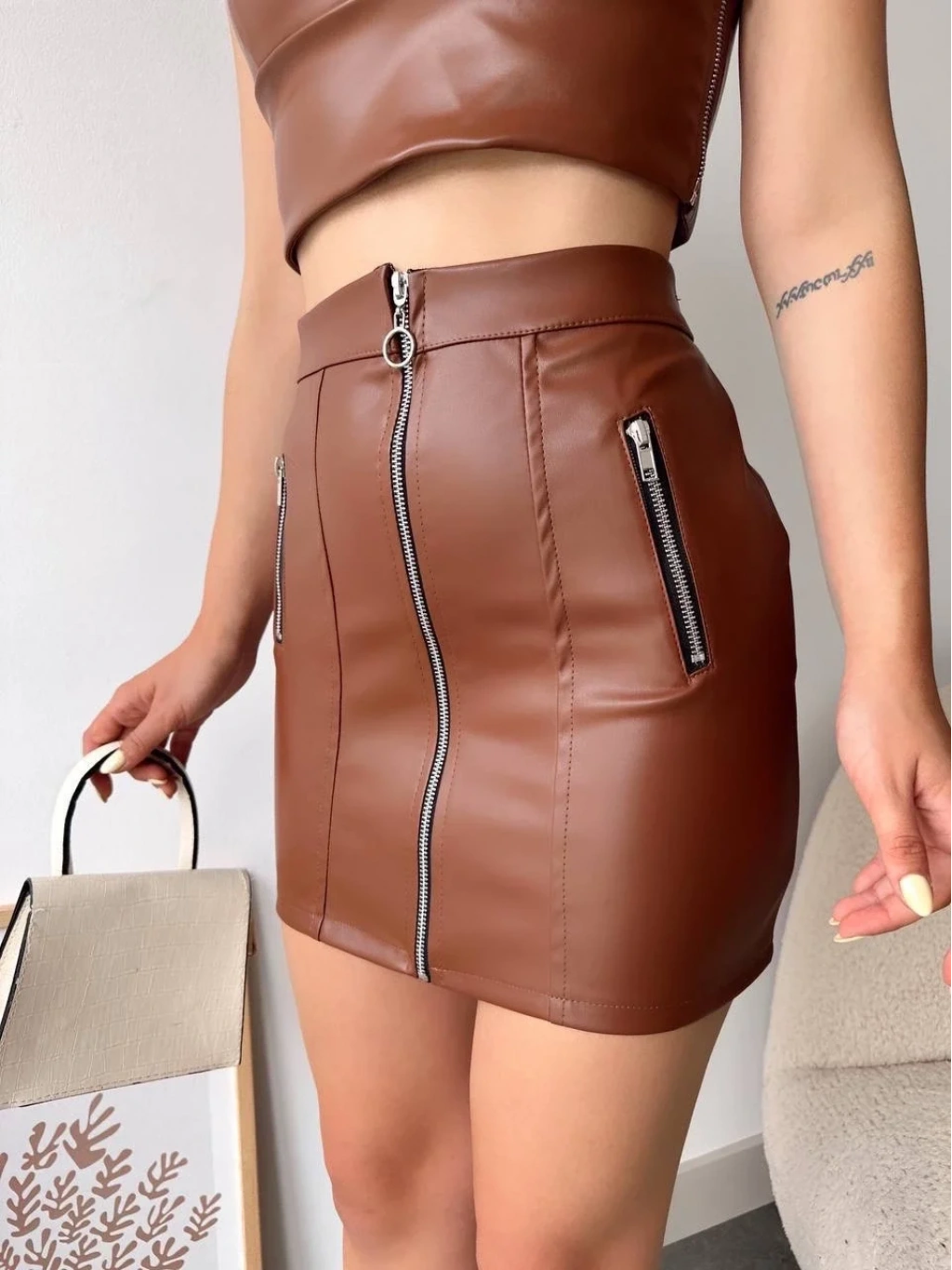 Şıklığı ve zarafeti bir arada sunan Üç Fermuarlı Deri Etek, gardırobunuzun vazgeçilmezi olmaya aday!